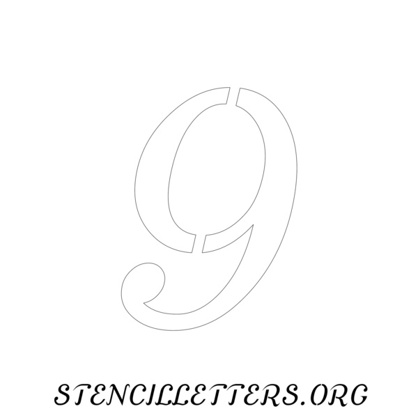 Printable Individual 0-9 Number stencils design 144 Cursive in 2 inch numbers high-resolution templates size.