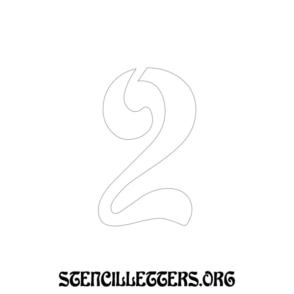 Printable Individual 0-9 Number stencils 196 Art Nouveau - 2 Inch Numbers