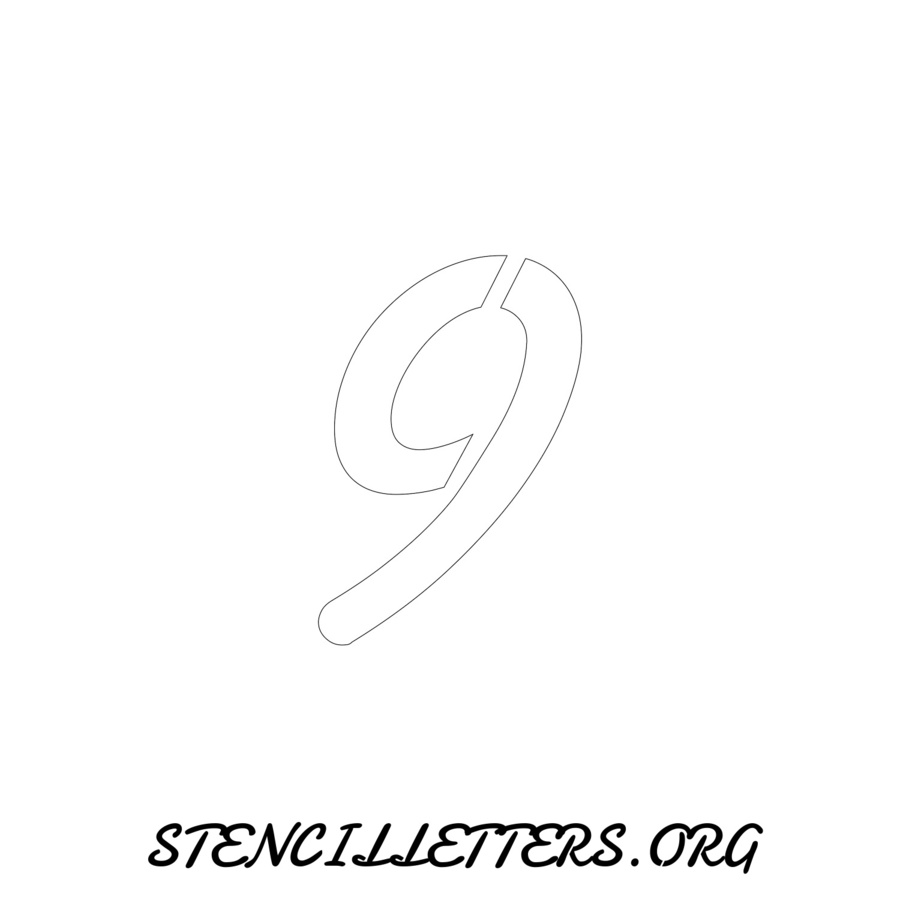 Printable Individual 0-9 Number stencils 139 Cursive - 3 Inch Numbers