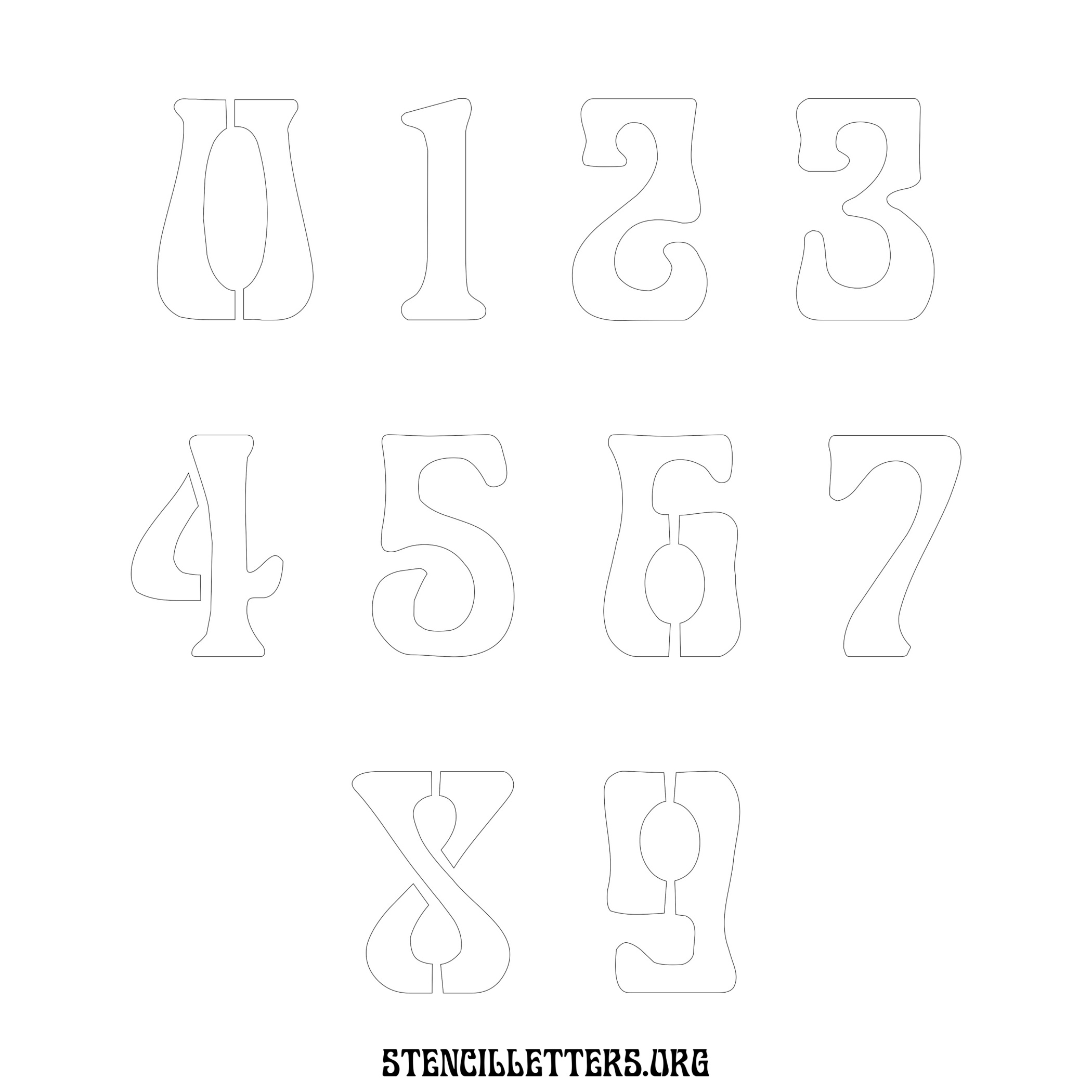 Stencil Design 191 Art Nouveau. Print these free numbers stencils and make your own DIY templates for your stenciling projects. Available in high resolution printable sizes: 4 Inch, 5 Inch, 6 Inch, 7 Inch, 8 Inch, 9 Inch and 10 Inch.