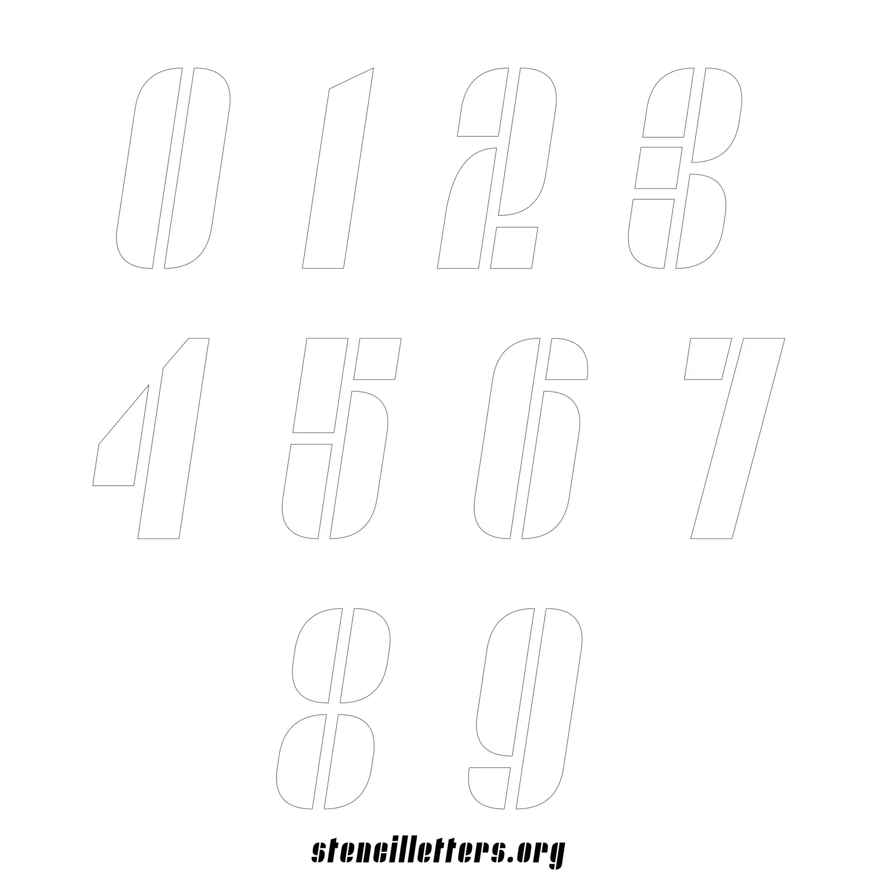 Stencil Design 257 Slanted. Print these free numbers stencils and make your own DIY templates for your stenciling projects. Available in high resolution printable sizes: 4 Inch, 5 Inch, 6 Inch, 7 Inch, 8 Inch, 9 Inch and 10 Inch.