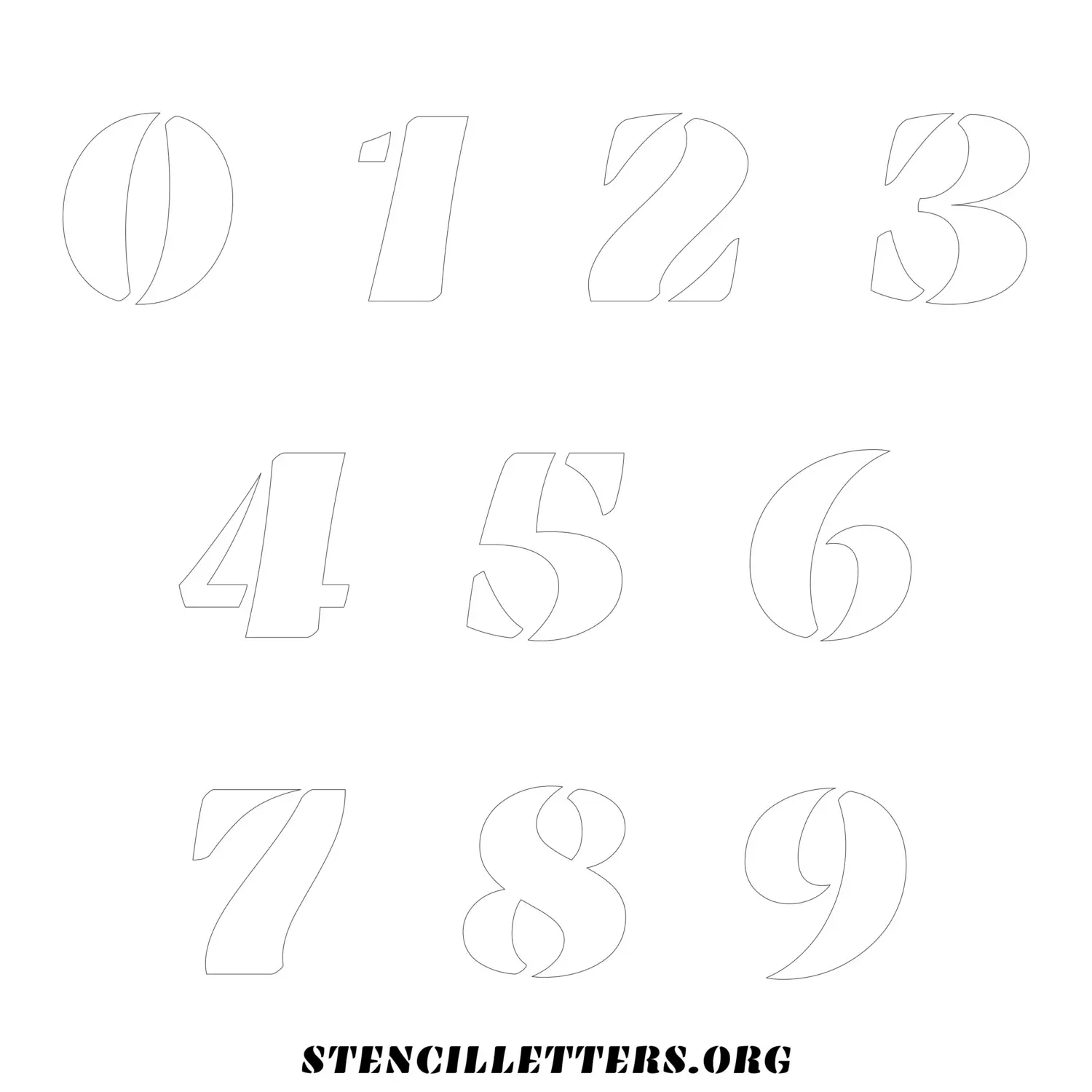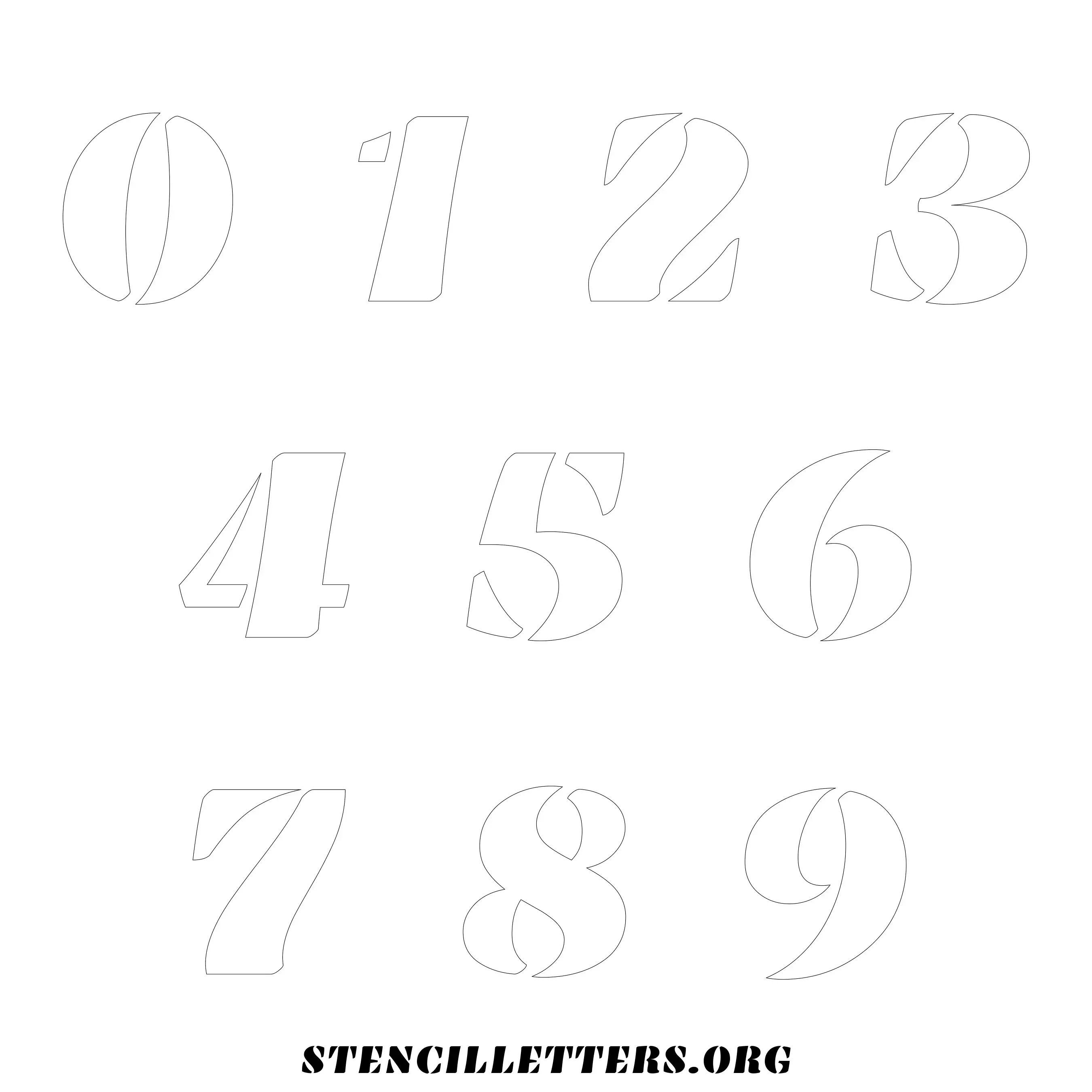 Stencil Design 269 Bold. Print these free numbers stencils and make your own DIY templates for your stenciling projects. Available in high resolution printable sizes: 4 Inch, 5 Inch, 6 Inch, 7 Inch, 8 Inch, 9 Inch and 10 Inch.