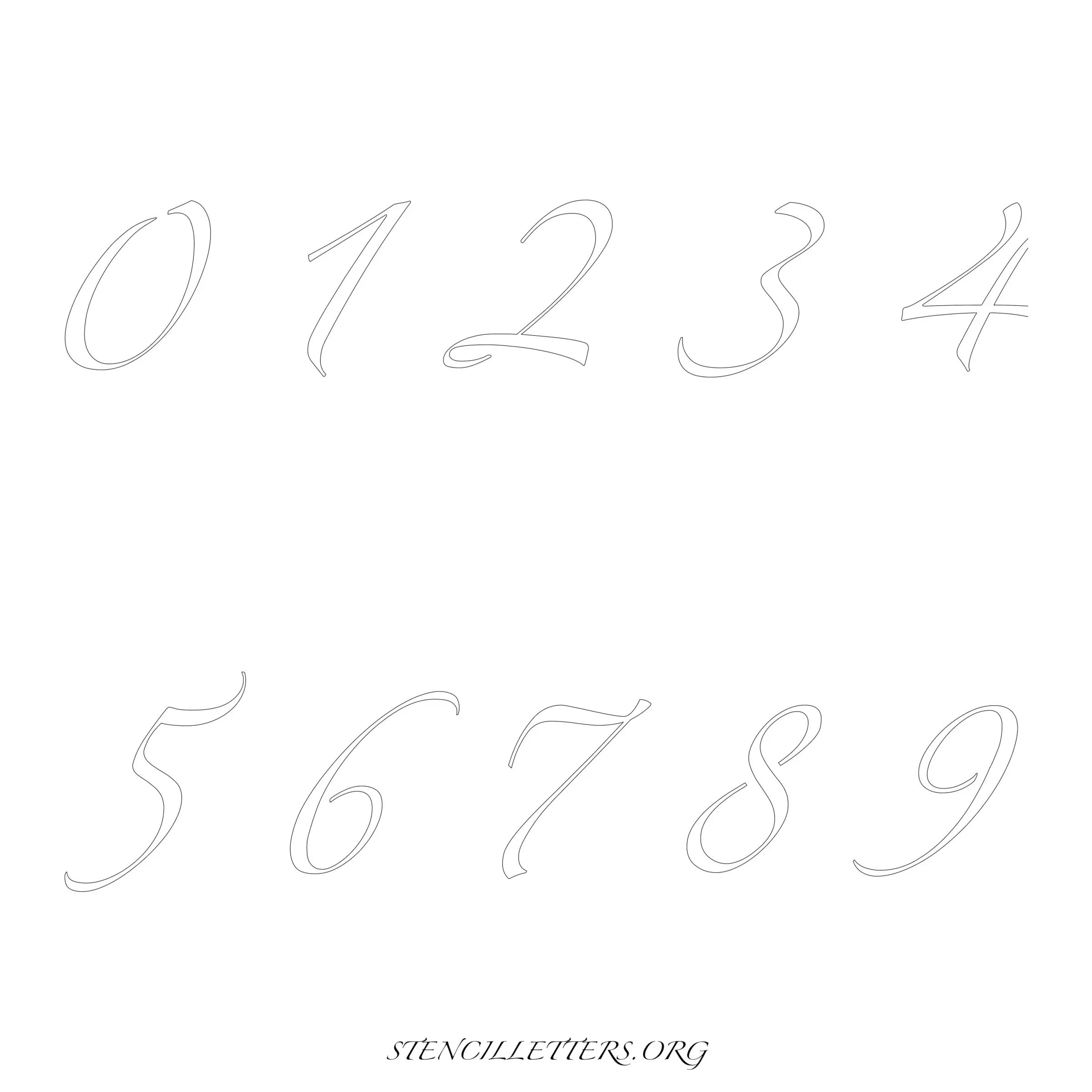Stencil Design 271 Cursive. Print these free numbers stencils and make your own DIY templates for your stenciling projects. Available in high resolution printable sizes: 4 Inch, 5 Inch, 6 Inch, 7 Inch, 8 Inch, 9 Inch and 10 Inch.