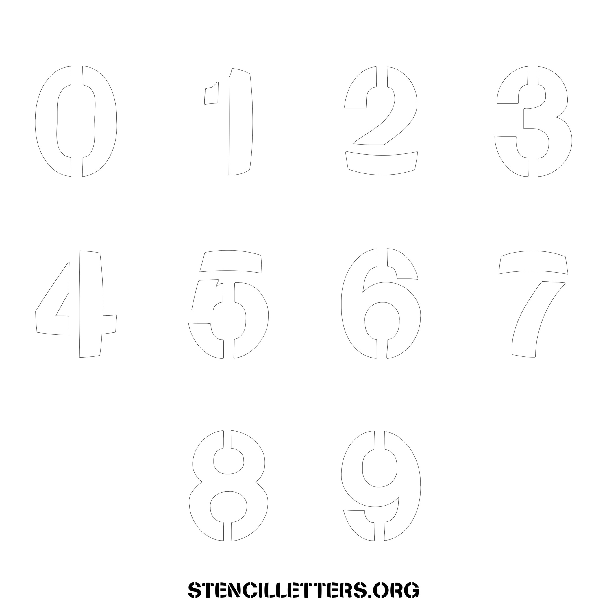 Stencil Design 281 Bold. Print these free numbers stencils and make your own DIY templates for your stenciling projects. Available in high resolution printable sizes: 4 Inch, 5 Inch, 6 Inch, 7 Inch, 8 Inch, 9 Inch and 10 Inch.