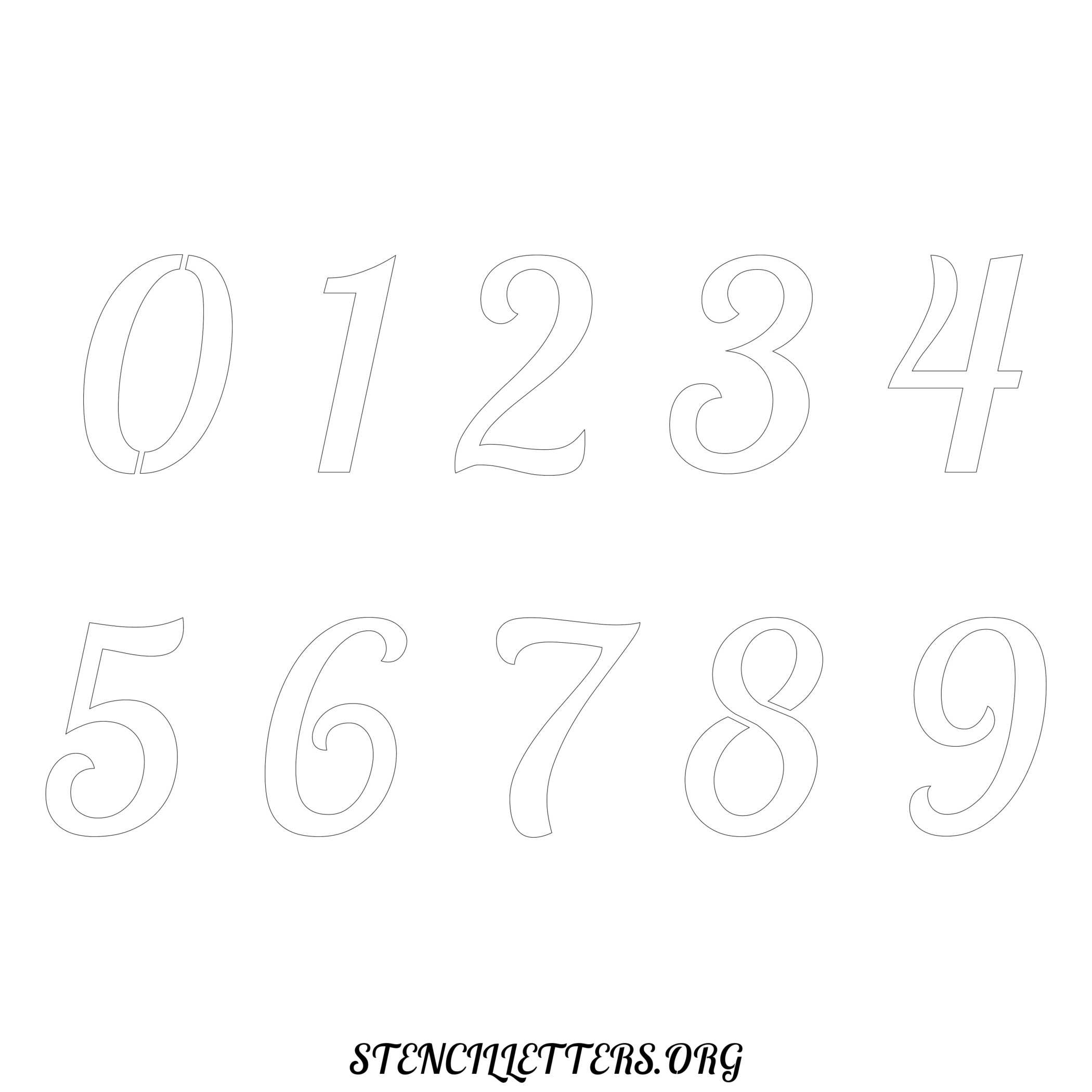 Stencil Design 45 Italic. Print these free numbers stencils and make your own DIY templates for your stenciling projects. Available in high resolution printable sizes: 4 Inch, 5 Inch, 6 Inch, 7 Inch, 8 Inch, 9 Inch and 10 Inch.