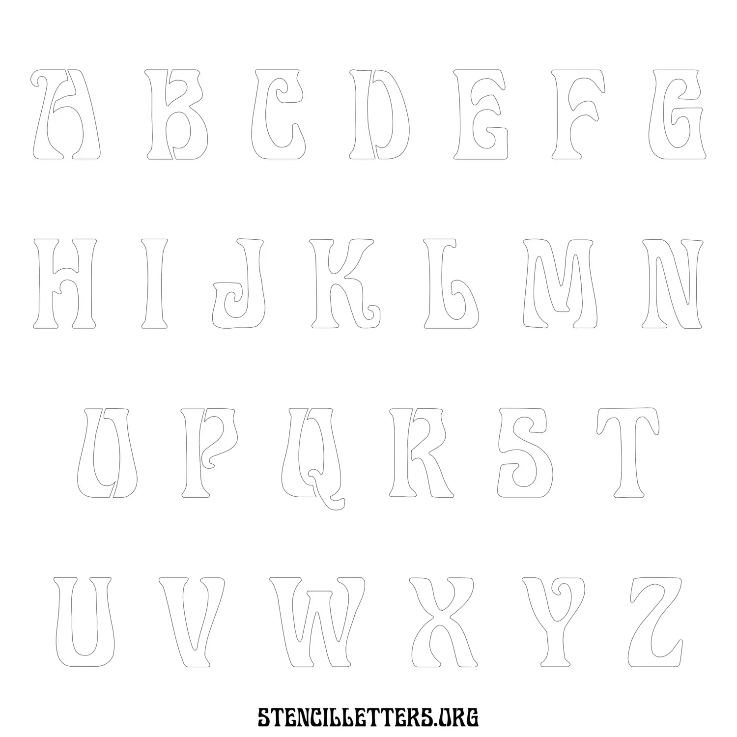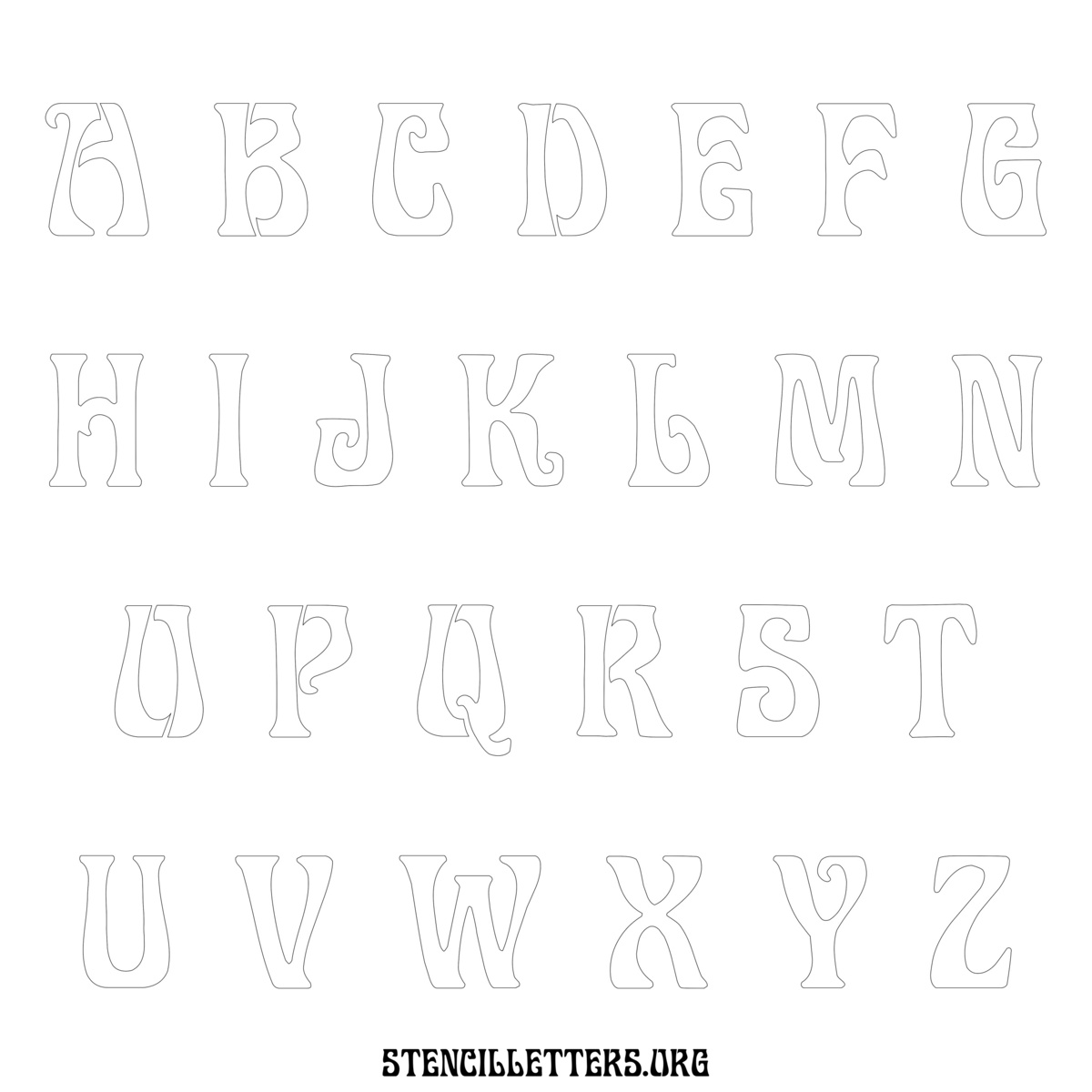 Stencil Design 191 Art Nouveau. Print these free lowercase letter stencils and make your own DIY templates for your stenciling projects. Available in high resolution printable sizes: 4 Inch, 5 Inch, 6 Inch, 7 Inch, 8 Inch, 9 Inch and 10 Inch.