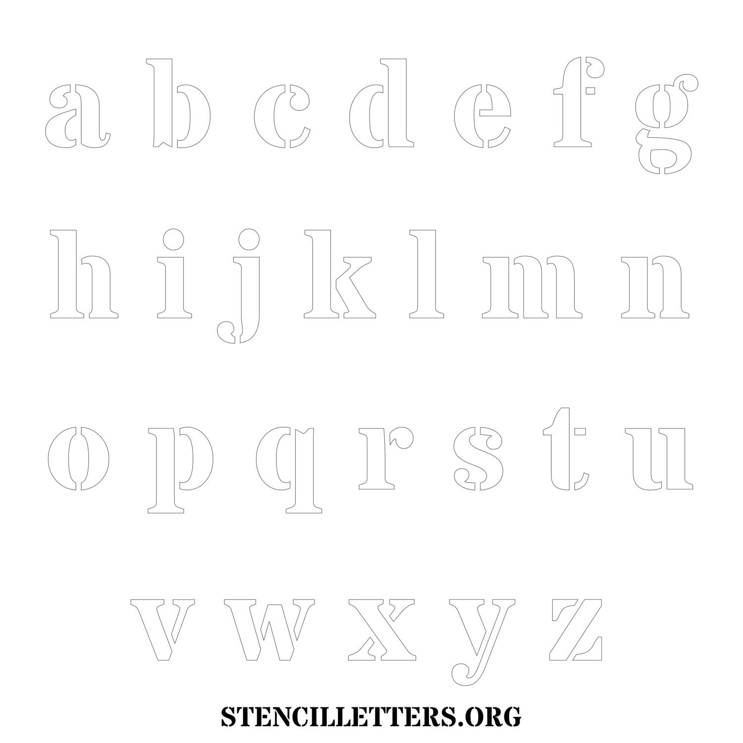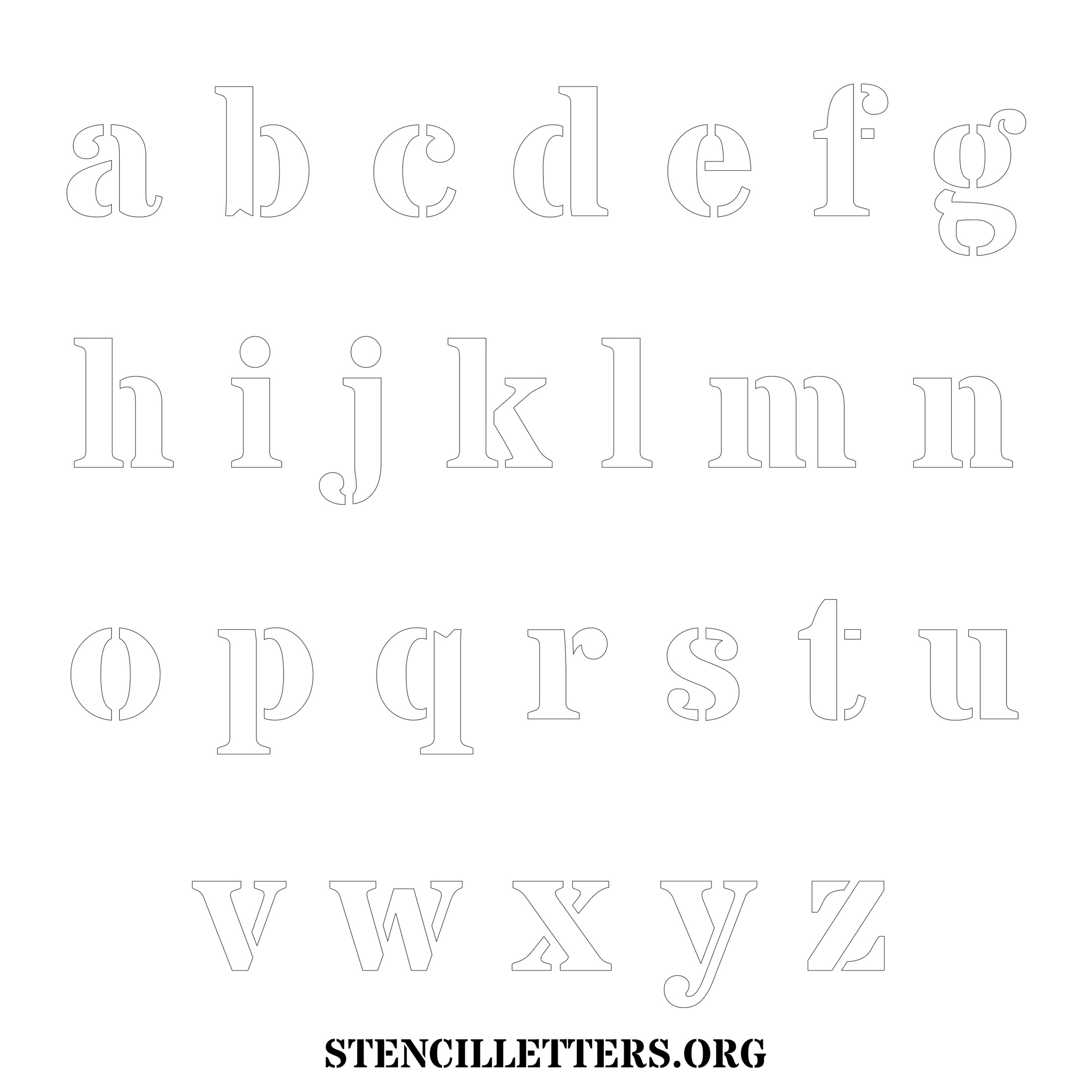 Stencil Design 279 Bold. Print these free lowercase letter stencils and make your own DIY templates for your stenciling projects. Available in high resolution printable sizes: 4 Inch, 5 Inch, 6 Inch, 7 Inch, 8 Inch, 9 Inch and 10 Inch.