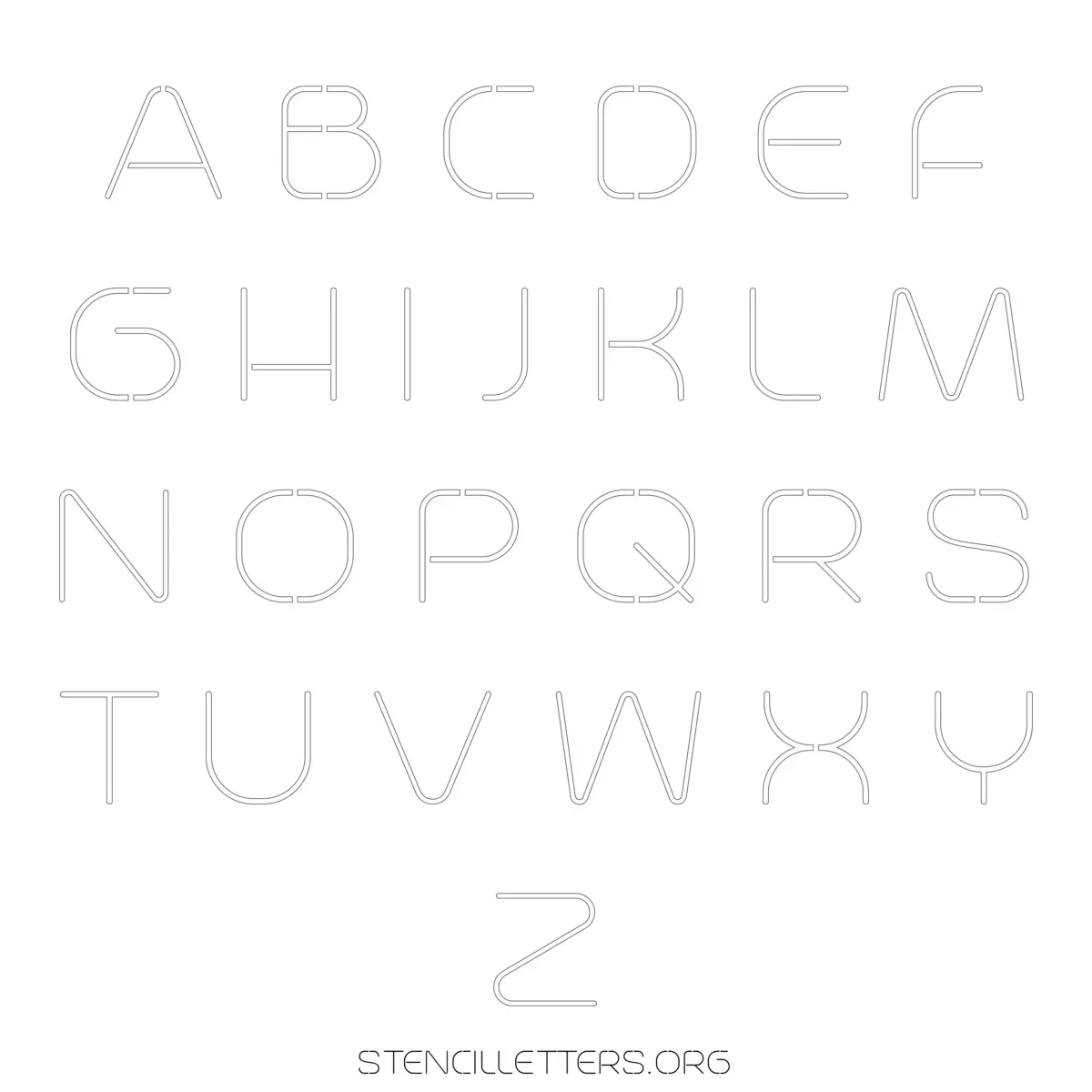 Stencil Design 1 Elegant. Print these free uppercase letter stencils and make your own DIY templates for your stenciling projects. Available in high resolution printable sizes: 4 Inch, 5 Inch, 6 Inch, 7 Inch, 8 Inch, 9 Inch and 10 Inch.