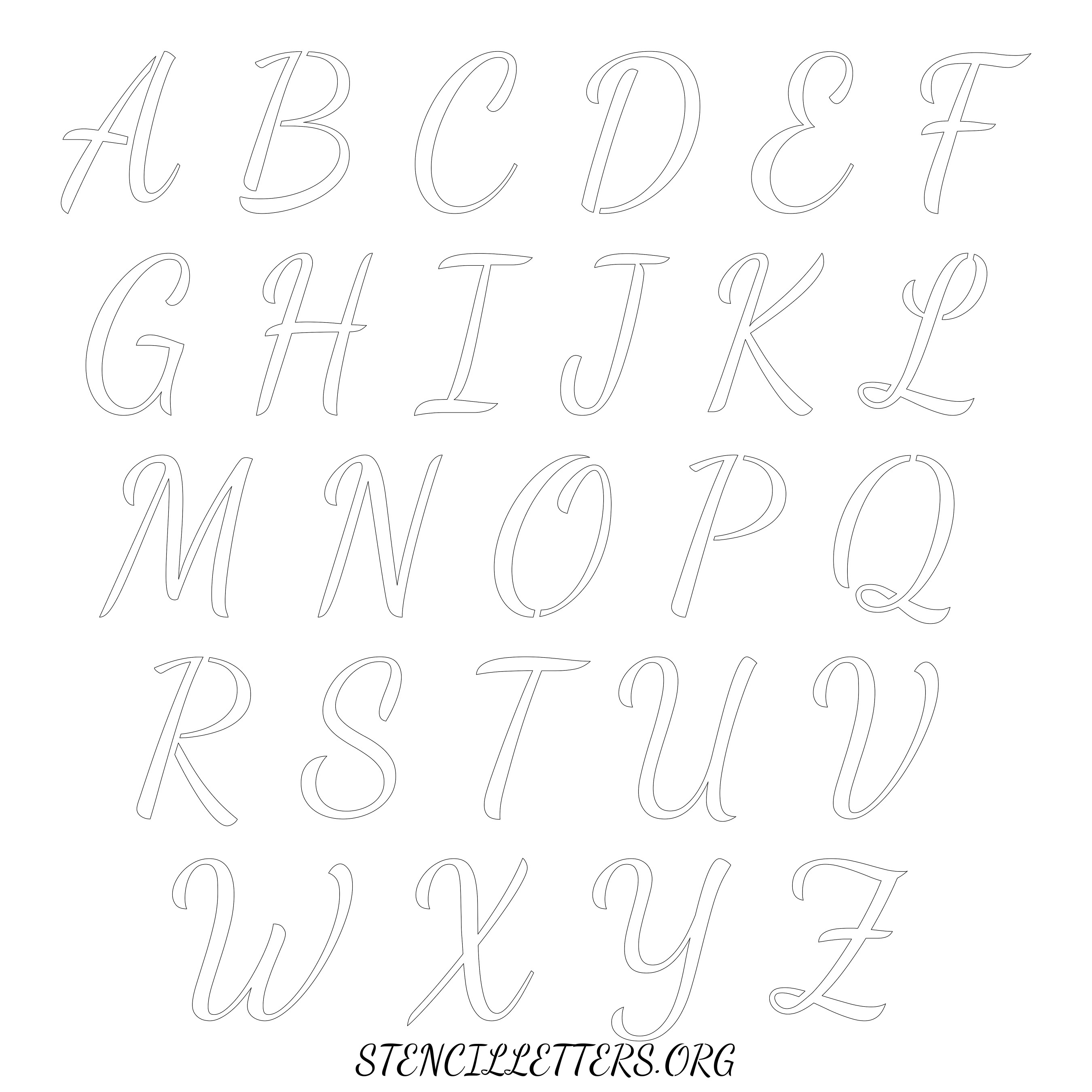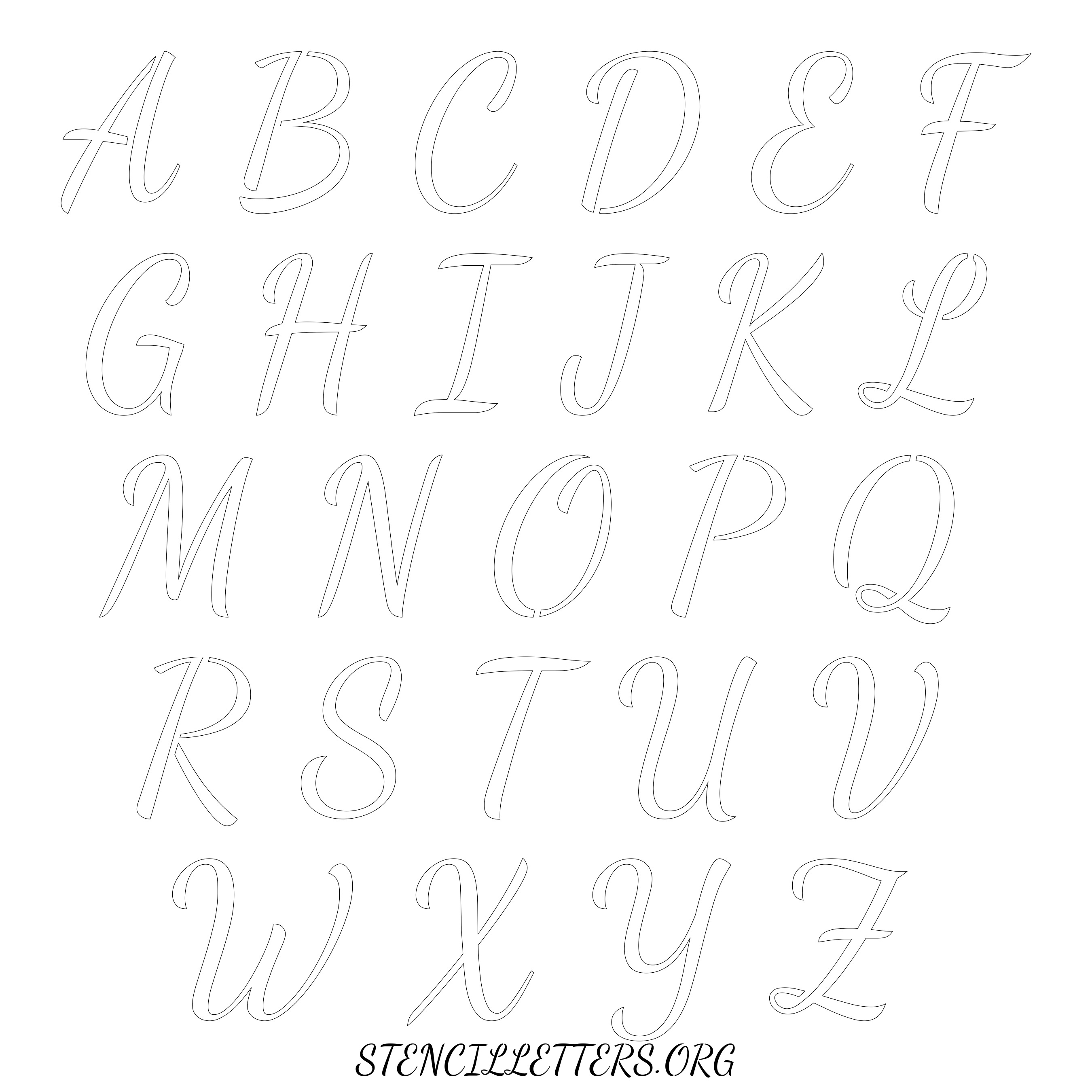 Stencil Design 133 Cursive. Print these free uppercase letter stencils and make your own DIY templates for your stenciling projects. Available in high resolution printable sizes: 4 Inch, 5 Inch, 6 Inch, 7 Inch, 8 Inch, 9 Inch and 10 Inch.
