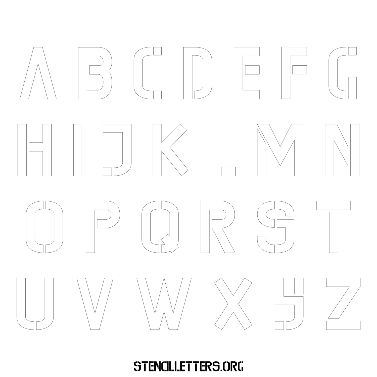 Stencil Design 225 Edgy. Print these free uppercase letter stencils and make your own DIY templates for your stenciling projects. Available in high resolution printable sizes: 4 Inch, 5 Inch, 6 Inch, 7 Inch, 8 Inch, 9 Inch and 10 Inch.