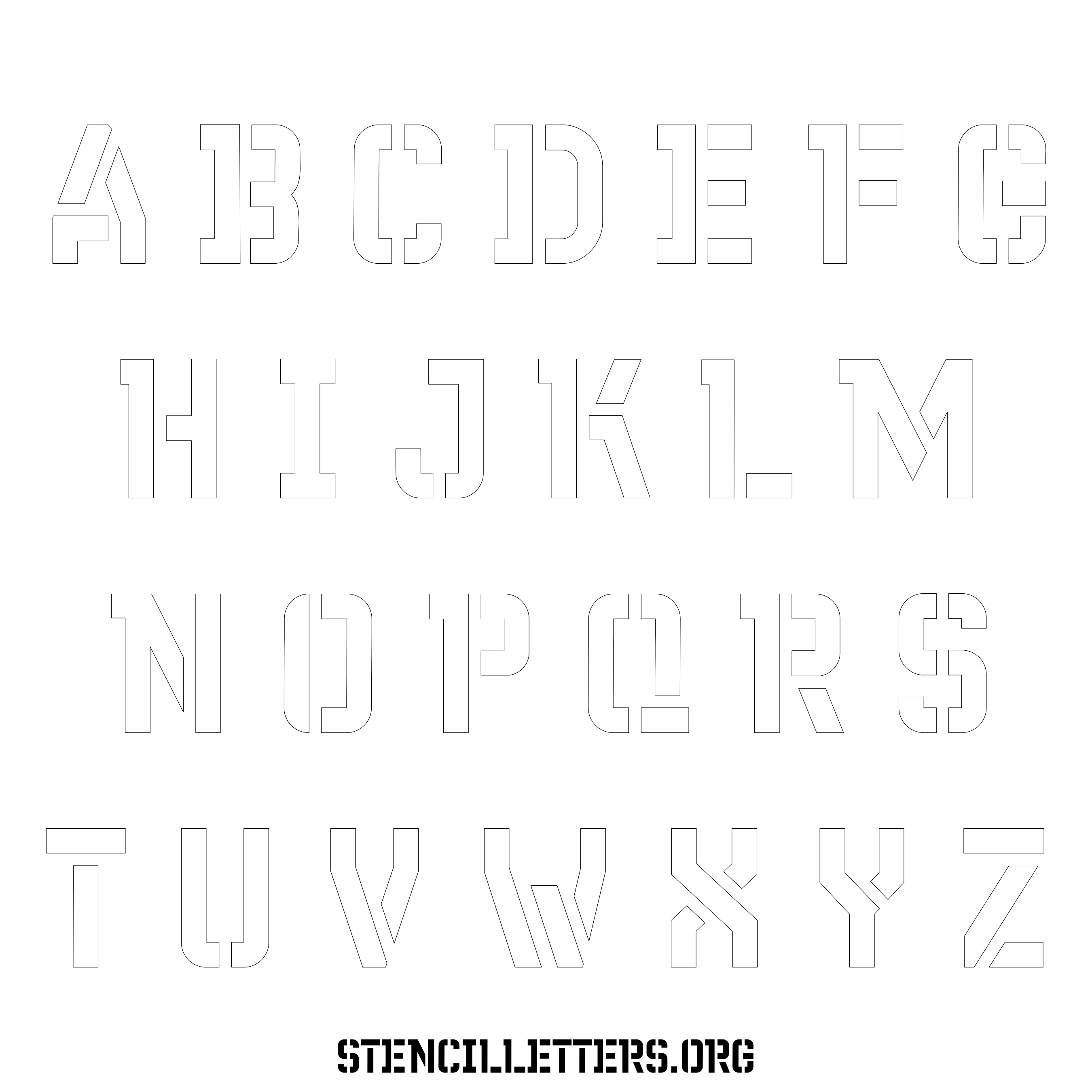 Stencil Design 230 Futuristic. Print these free uppercase letter stencils and make your own DIY templates for your stenciling projects. Available in high resolution printable sizes: 4 Inch, 5 Inch, 6 Inch, 7 Inch, 8 Inch, 9 Inch and 10 Inch.