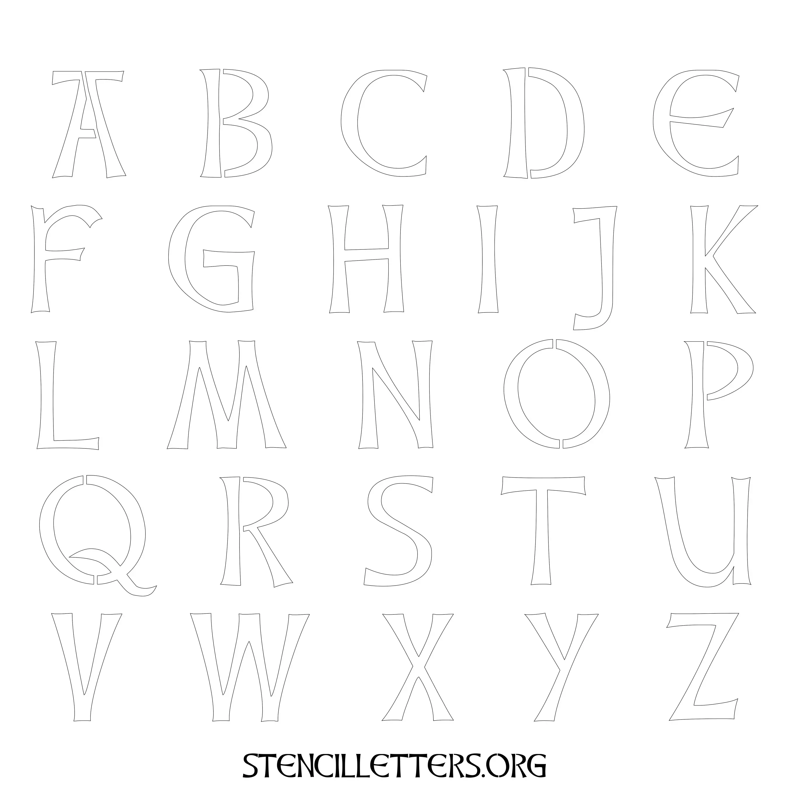 Printable Uppercase Alphabet Stencils - Design 29 Celtic