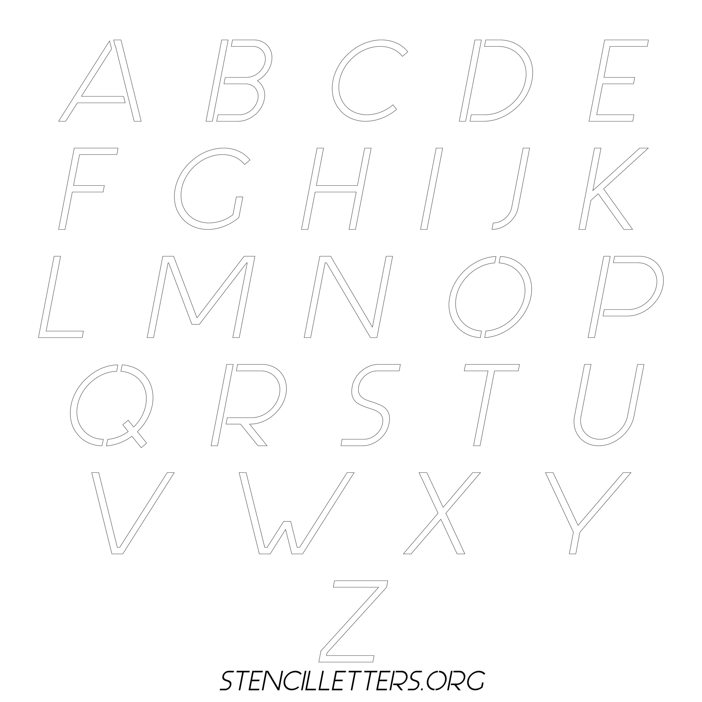 Stencil Design 44 Italic. Print these free uppercase letter stencils and make your own DIY templates for your stenciling projects. Available in high resolution printable sizes: 4 Inch, 5 Inch, 6 Inch, 7 Inch, 8 Inch, 9 Inch and 10 Inch.