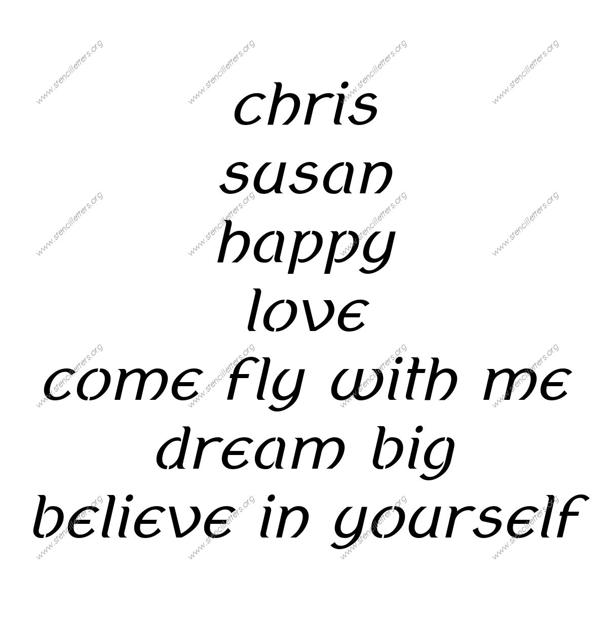 Ancient Celtic Italic lowercase stencil Names, Words, Phrases samples