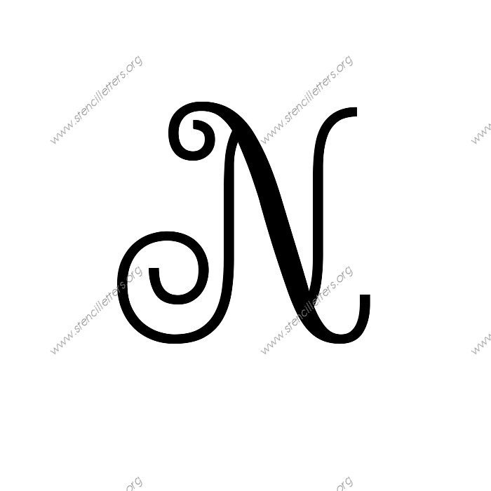 A cursive script with creative decorative looking letters. Add a graceful touch to your stencil project with these harmonious and eye pleasing alphabet stencils.