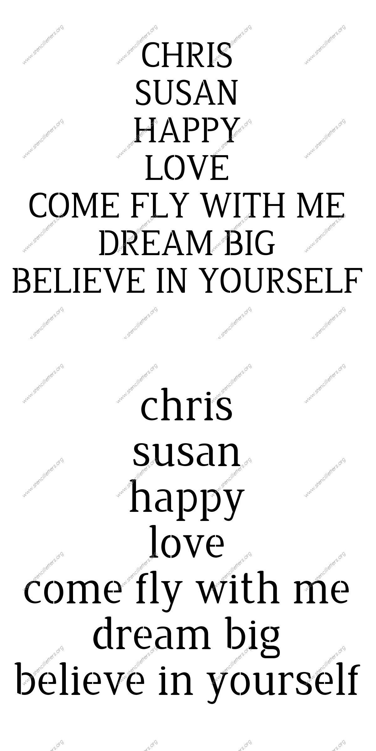Narrow Rounded Serif personalized stencils letter stencils to order