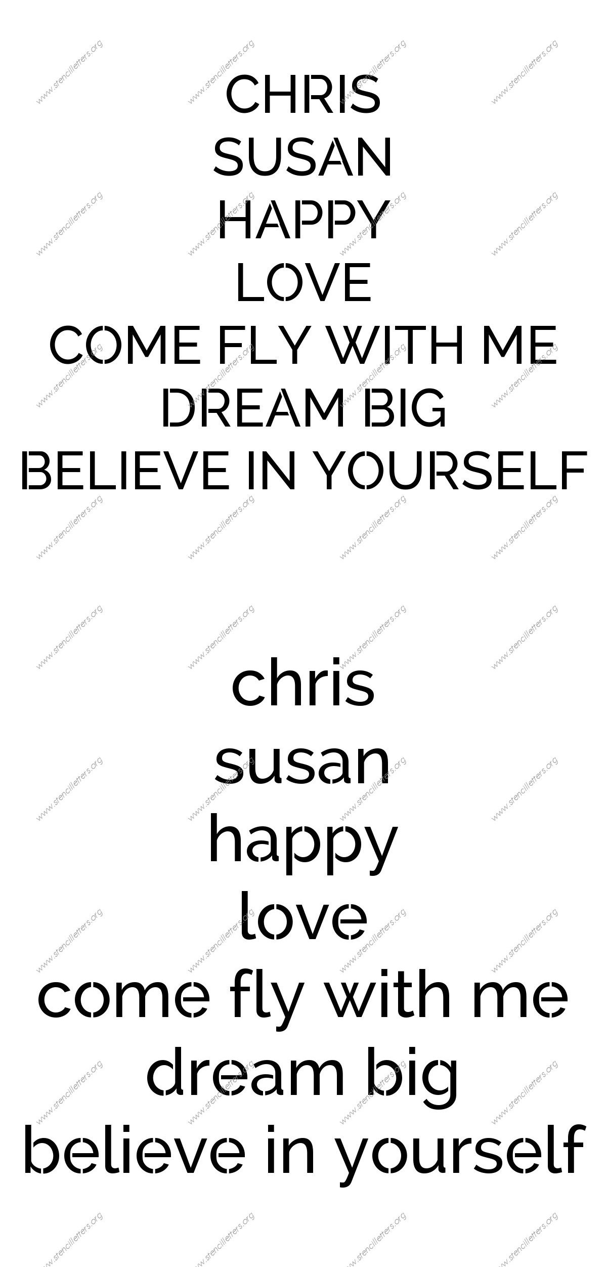 This bold and elegant stencil letter set with smooth clean lines in sans-serif is great for your personalized words, names and phrases.